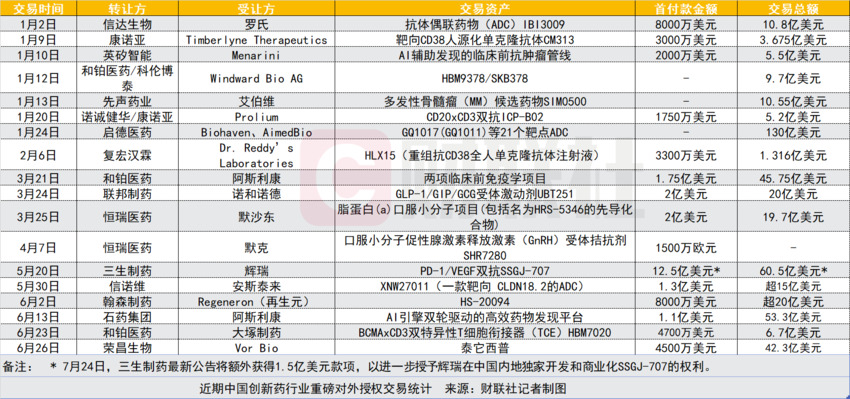 ①上半年,中國創新葯企業對海外授權交易金額已超去年全年;