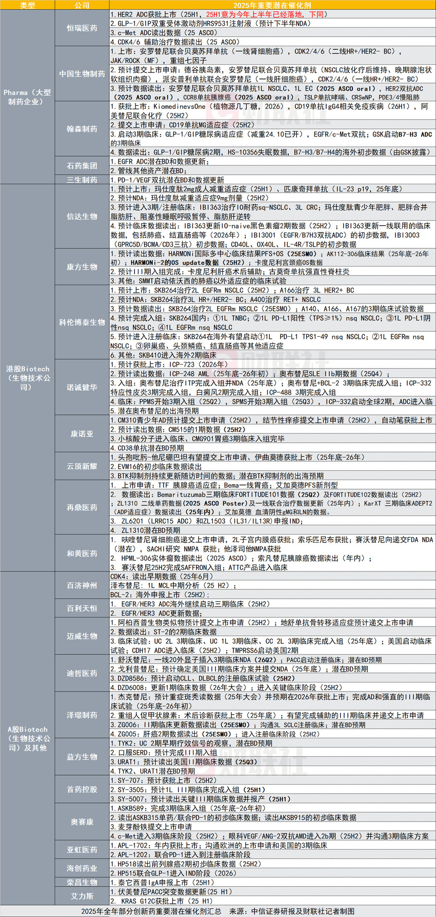③2025年下半年多個創新葯龍頭公司催化劑密集,其進展值得期待。